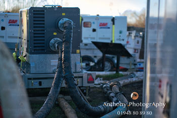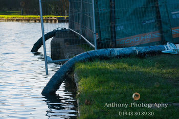 Images from the breach on the canal at Whitchurch, by Anthony Photography the boat that was hanging over the edge of the breach has been winched onto more stable ground, and the water is being pumped around from one cofferdam to the other to rase the water level and to maintain the water supply for the towns further on down the canal network.